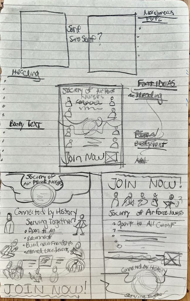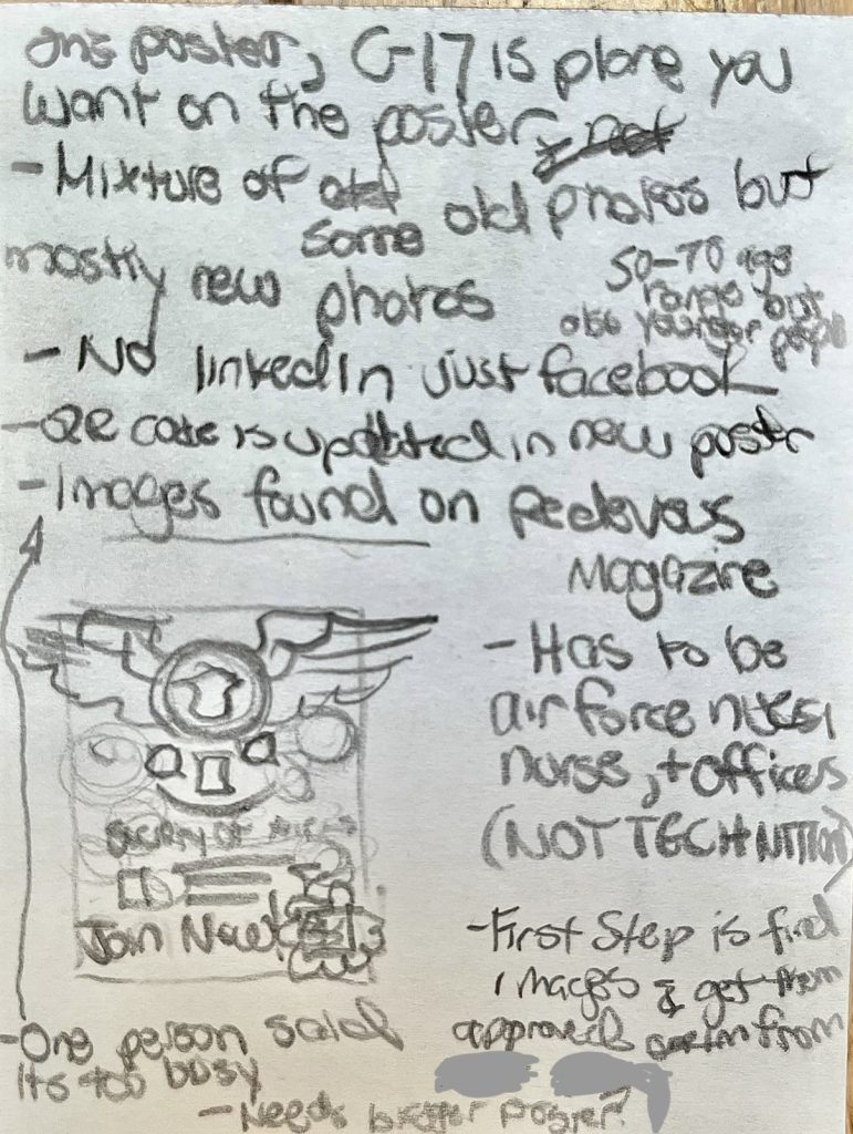 Collaborating with the Society of Air Force Nurses by redesigning their recruitment posters using feedback from client as well as using photoshop and illustrator to create numerous drafts, sharpen photos, make 3D materials such as badges, and inserting them on a poster with information provided by the Society.