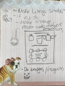 I made the wings silver, shrunk them, and put it on either side because the feedback said they seemed big and fake. I also cleaned up around the borders of the clouds to make them more soft and removed the white borders around the circular photos. I also added additional text and made the white body text font smaller.