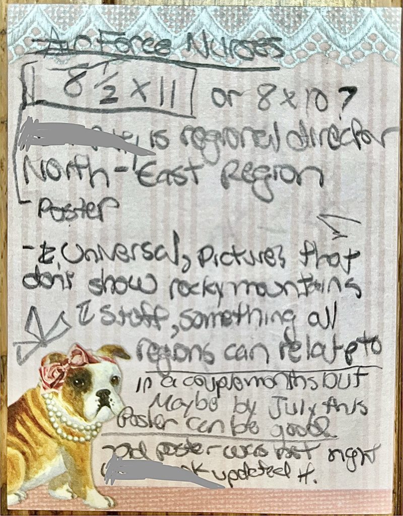 Here the pictures were changed from the horseshoe formation to a square formation. The badge was also changed to more resemble the air force nurse badges. They also wanted me to remove photos and sharpen others.